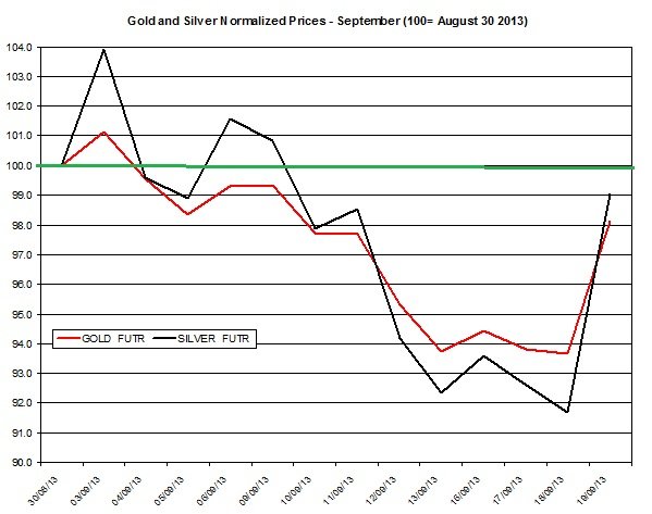 Gold and silver prices sharply rose yesterday following the decision of the FOMC ot keep its policy unchanged without tapering its asset purchase program. The progress of the U.S economy will continue to affect FOMC members and whether there will…